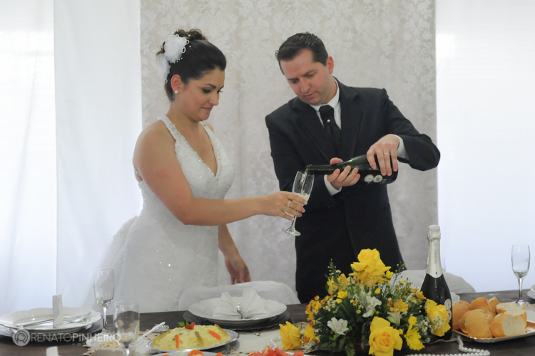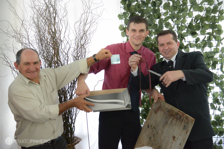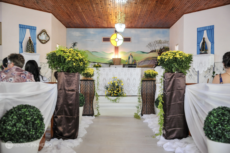 O casal pensou em todos os detalhes da festa, foi tudo lindo, transformaram o salão da igreja da Ponte Canoas. Ficou top.