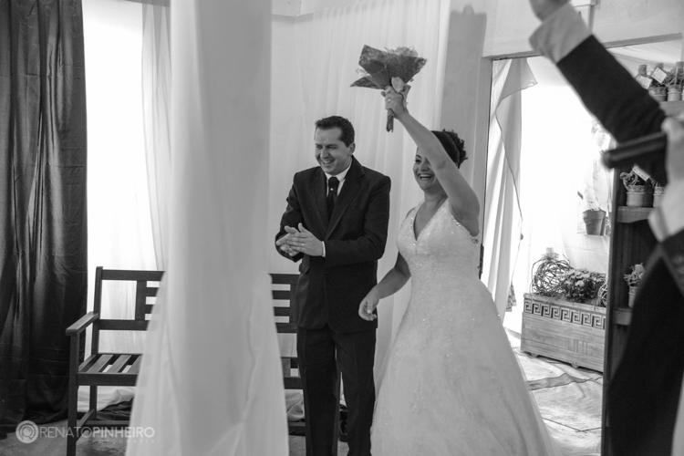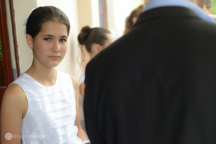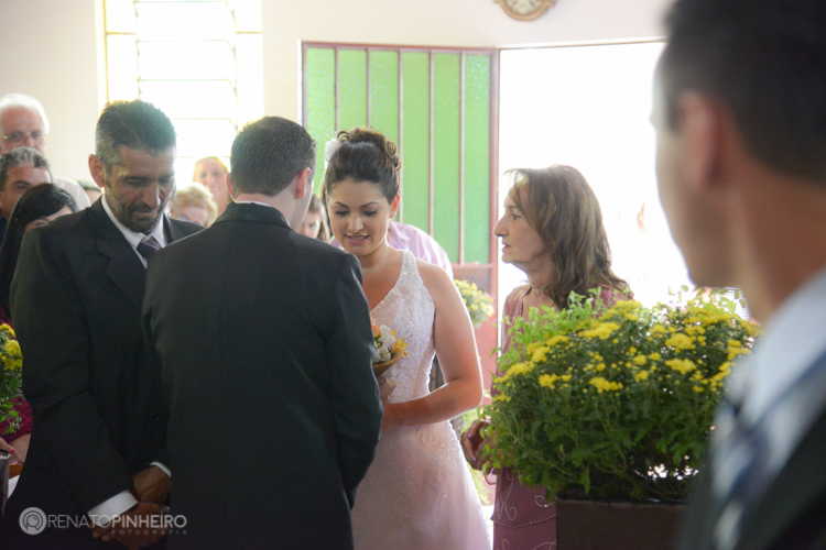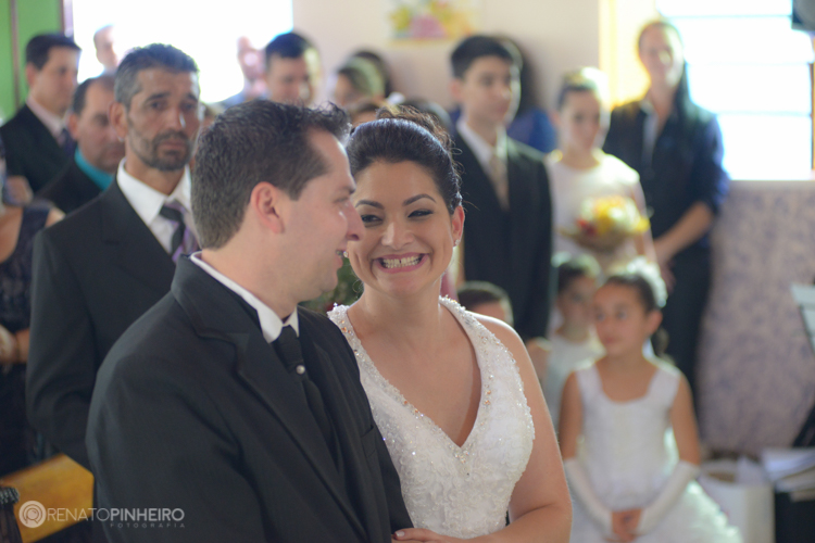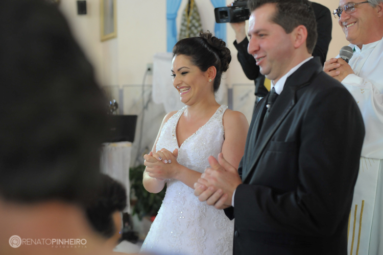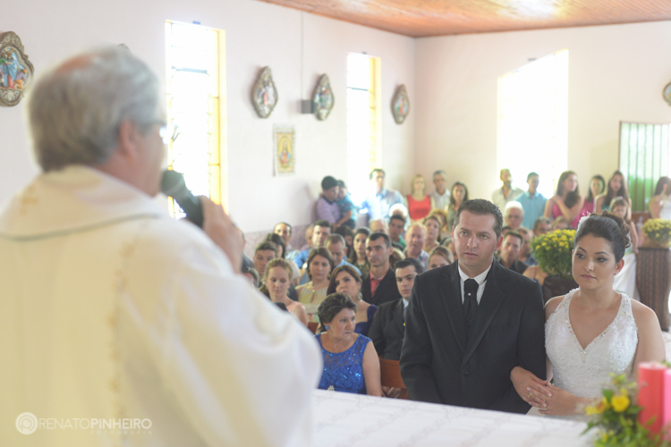 O padre atrasou um pouquinho, deixou os noivos suando literalmente, pois pensem no calor na hora do casamento, mas o calor melhor era o humano que se sentia durante todo o evento.