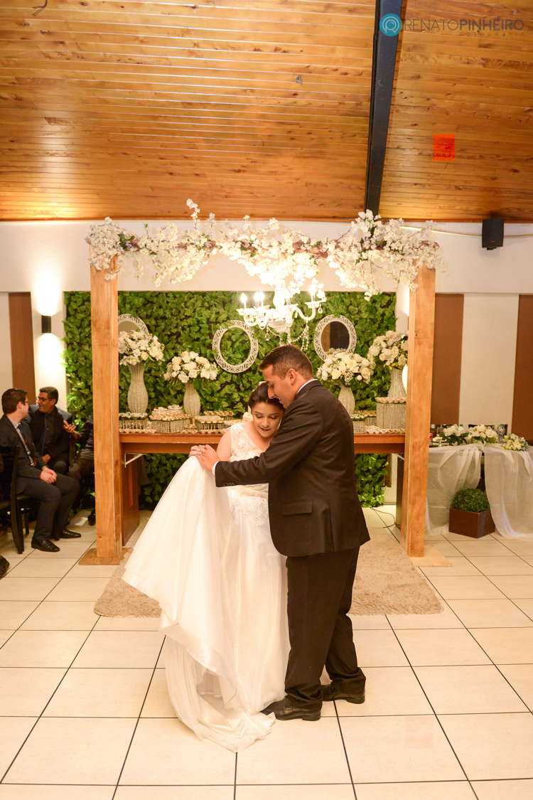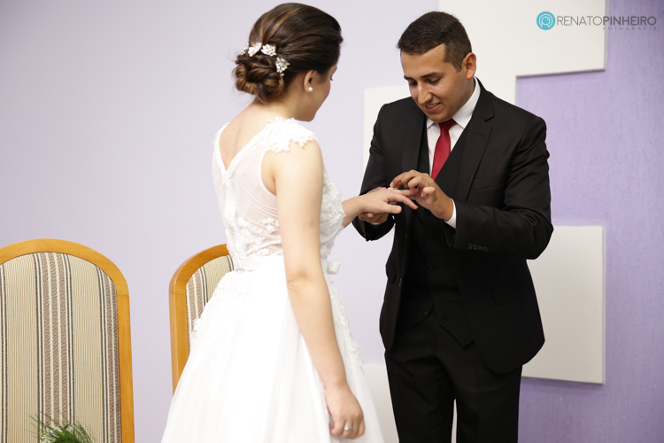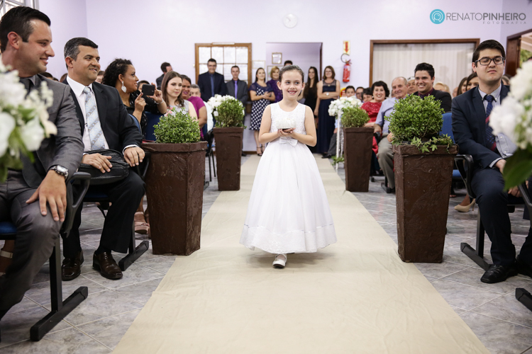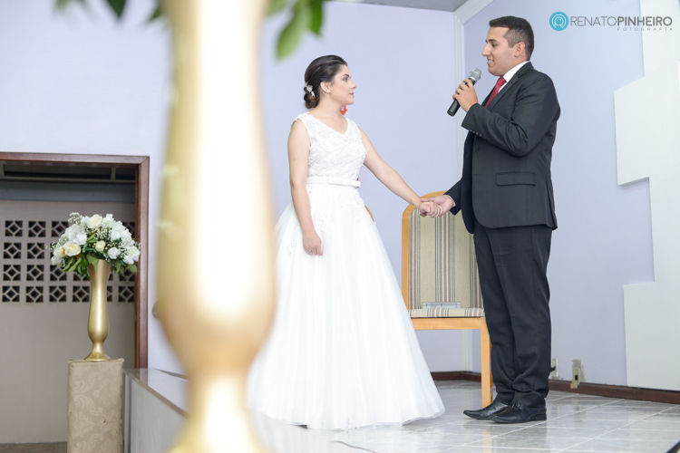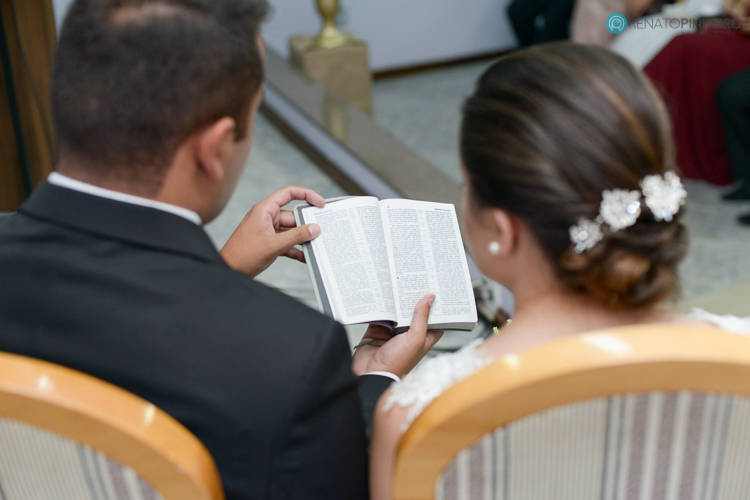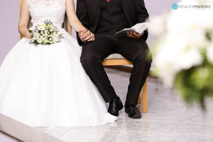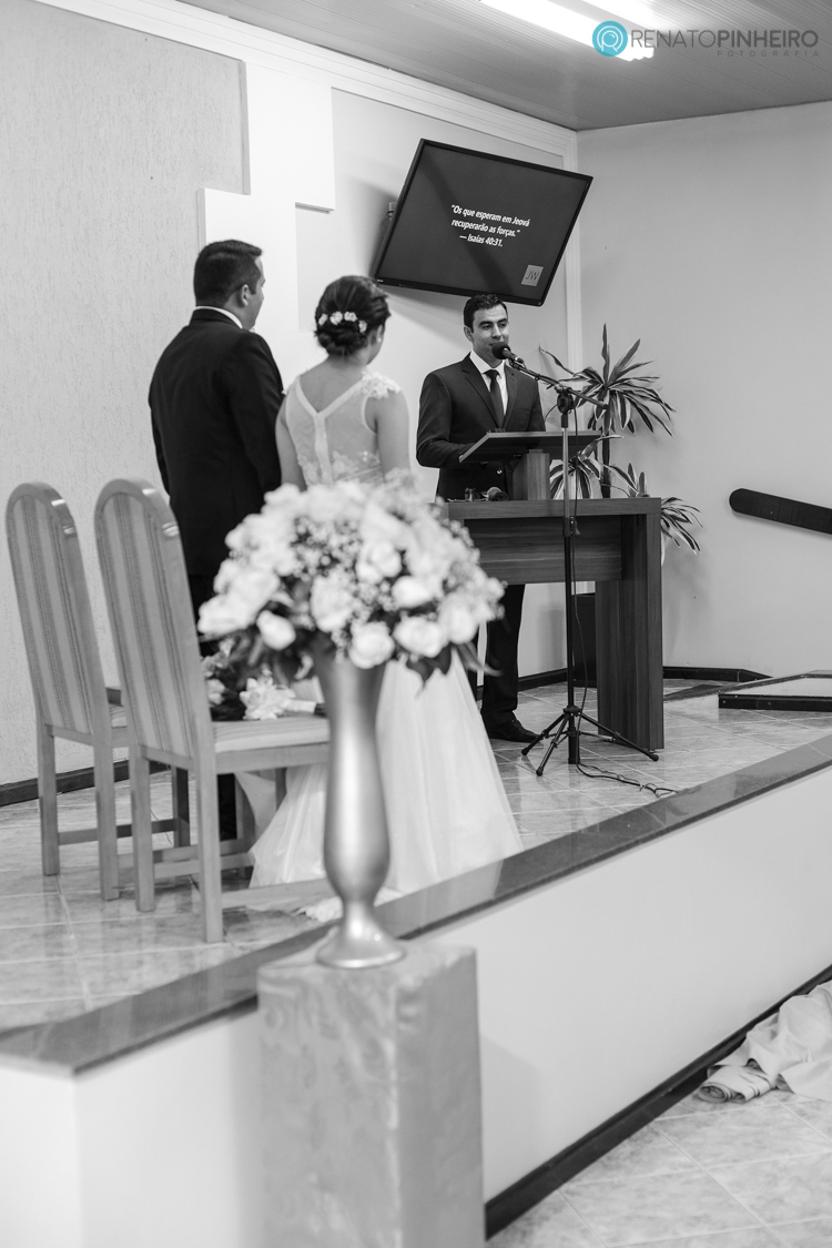 A cerimônia foi no São do Reino das Testemunhas de Jeová no bairro da Várzea em Lages, uma cerimônia tranquila mas com palavras lindas sobre o poder e a força de um casamento. Depois dos ritos do casamento, no cântico final a gente não fotografou pois a prioridade nesse momento é todos cantarem juntos.