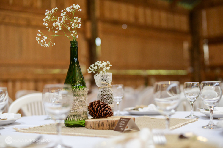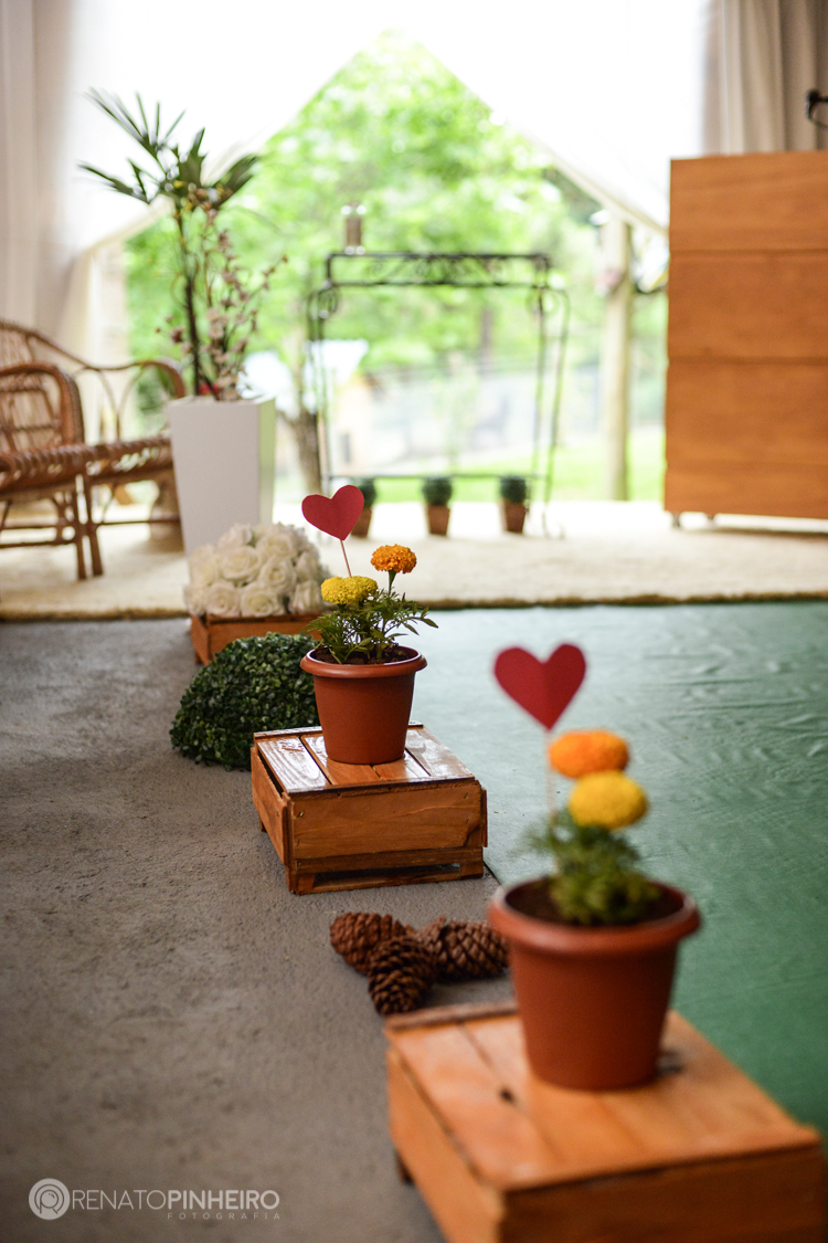 Foi uma cerimônia linda, no campo, de manhã, estilo rústico, e com muito convidados. Toda, eu disse toda a a decoração do casamento foi feita pela noiva Mariana, que contou com a ajuda de madrinhas e amigas. Ela pensou em cada detalhe, cada mimo que enriqueceu demais todo o evento. Já o Romerito comandava o churrasco e as geladas, hehe.