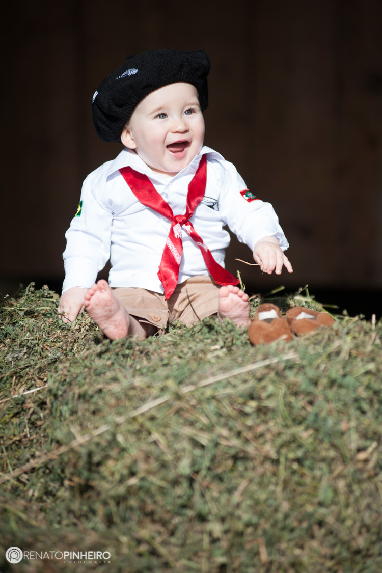 O Pedro foi um querido, fofo e risonho. Ele se divertiu do começo ao fim do ensaio com as palhaçadas que papai, mamãe, titia (dinda), vovó e até a Brida faziam pra ele se soltar. O ápice do ensaio foi o traje galderio onde o laço pegou, a gaita assoviou e o cavalo gineteou.