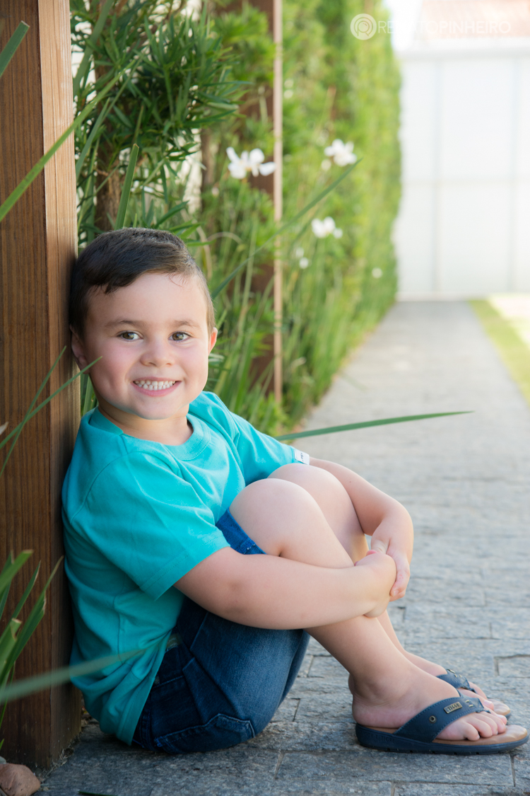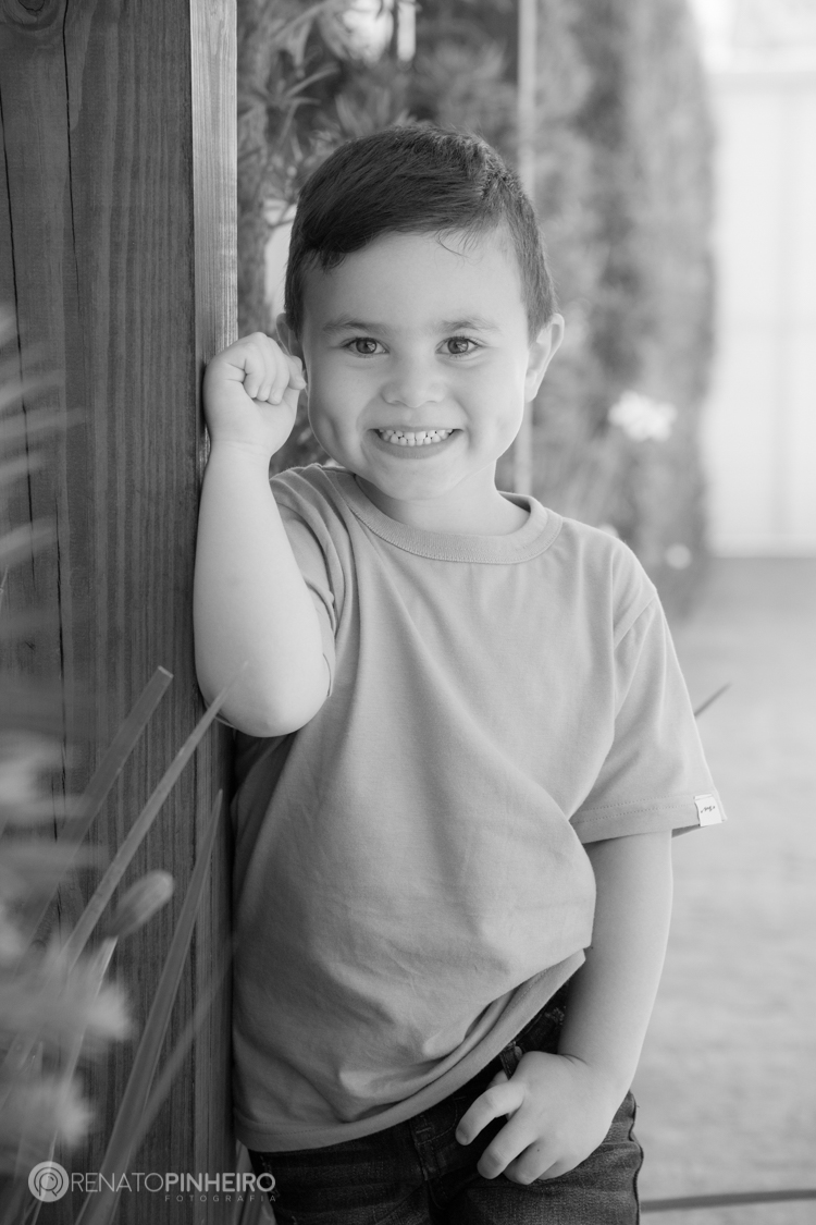 Os três ao mesmo tempo tão parecidos e tão diferentes. O João foi um "lorde" fez poses, sorriu e se divertiu parecendo gente grande. O Luis um figuraça sempre na dele, calmão, relax, paz e amor, sempre com uma carinha de paz e felicidade. E a dona Lívia, a menininha da casa, se comportou como tal, mandando nos meninos, hehe, e claro para cada olhada na para a câmera um cara expressiva e autêntica. Três crianças lindas e cheia de energia que não precisaram ao menos sair de casa para fazer esse ensaio, pois a casa deles é linda, com um jardim mais lindo ainda.