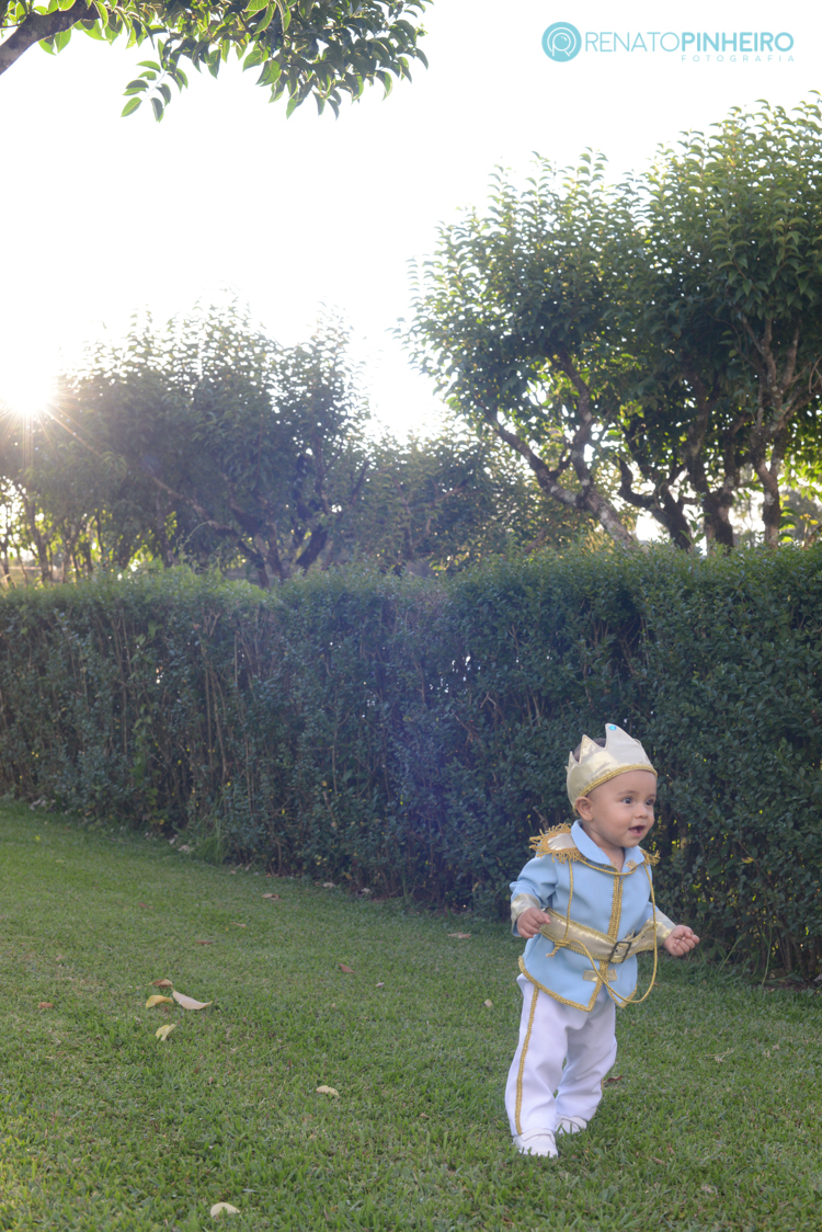 Como estava quente, o Gabriel não via a hora de se despir das vestes reais e poder colocar uma roupa comum. Mas antes disso tirou fotos com todos, cantou parabéns e claro se divertiu com os amigos na cama elástica. Se comportou como um príncipe mesmo. E claro que a gente não perdeu nenhum momento e fizemos imagens lindas desse pequeno.