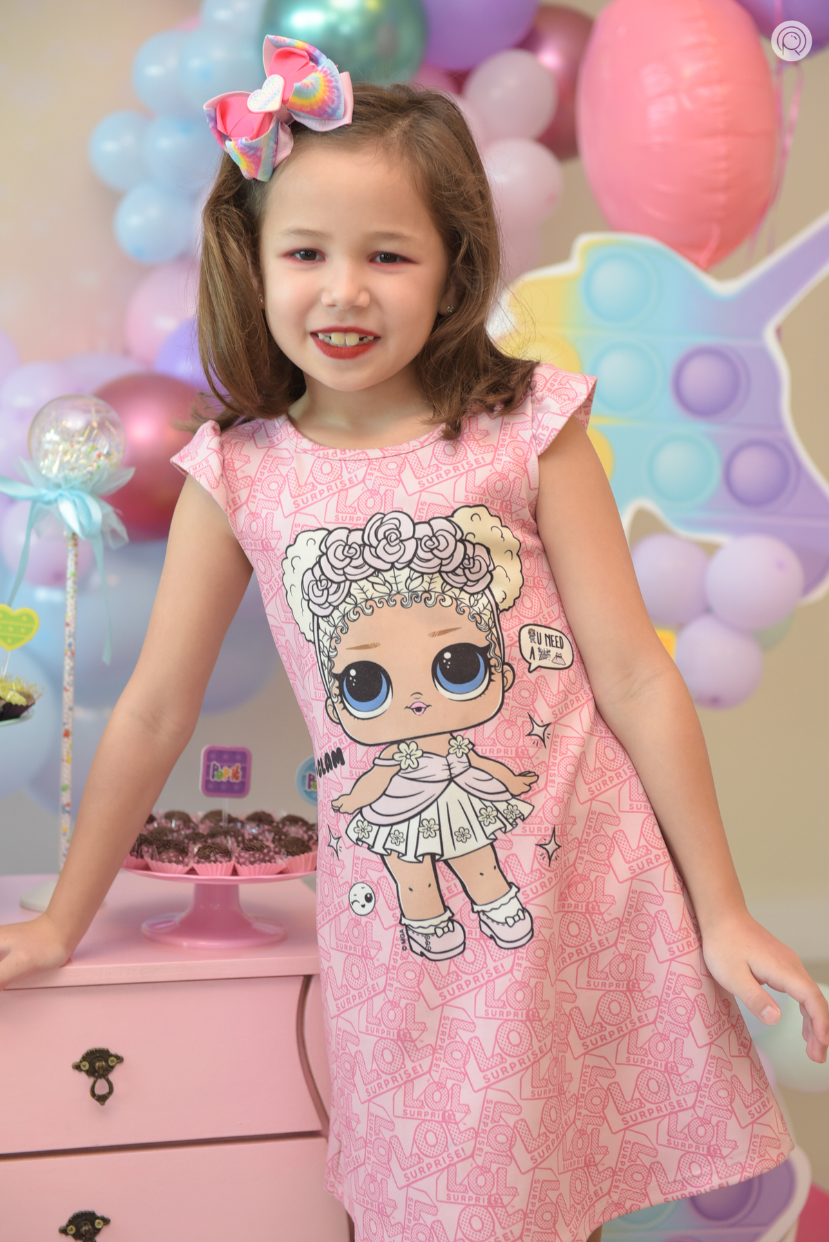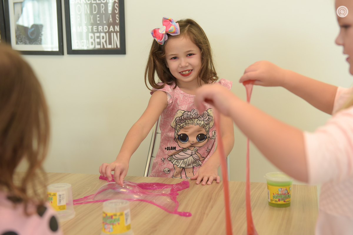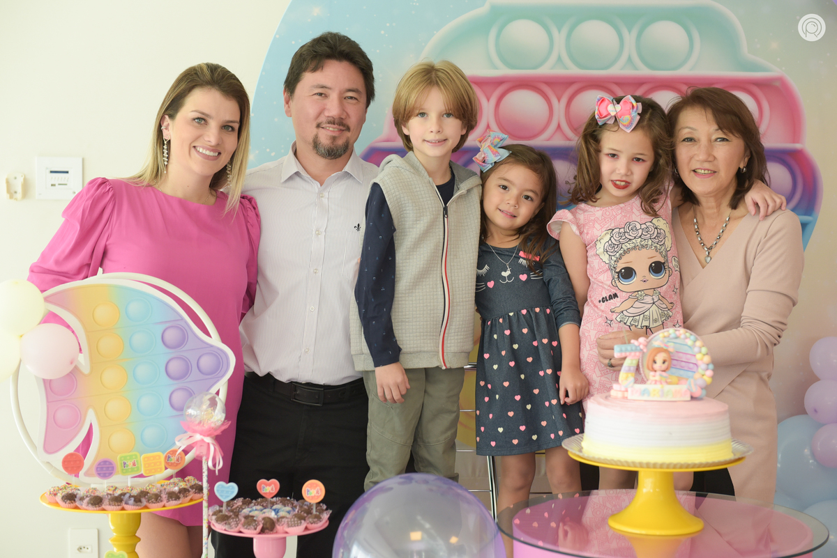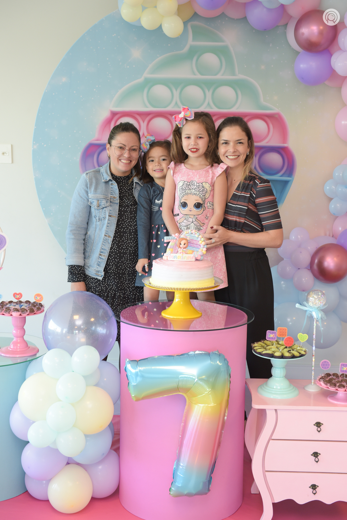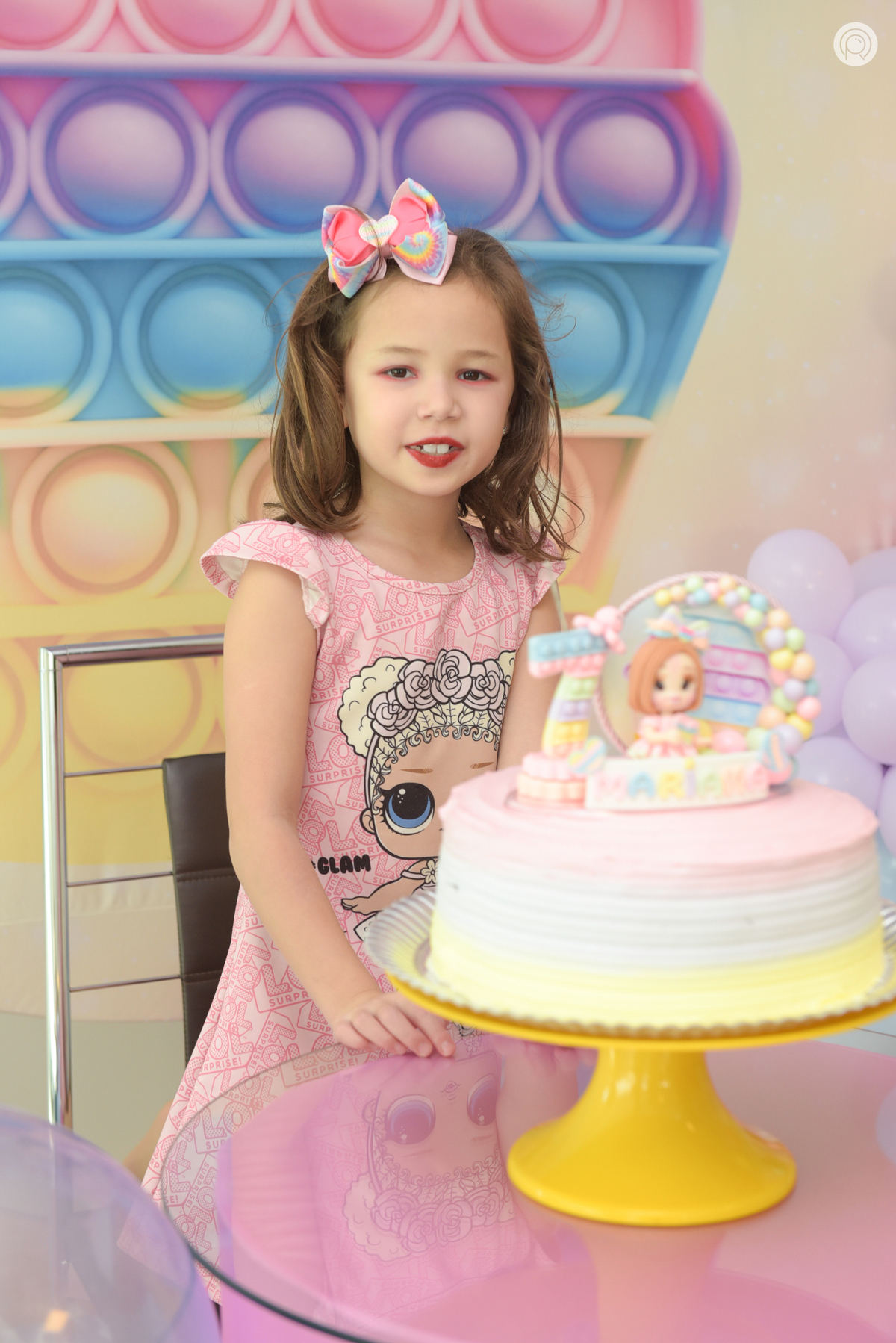 Os 7 anos da Mariana regado de muita bagunça, criançada reunida e claro cores de Pop It.