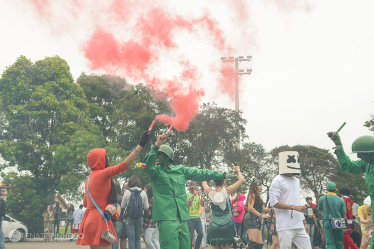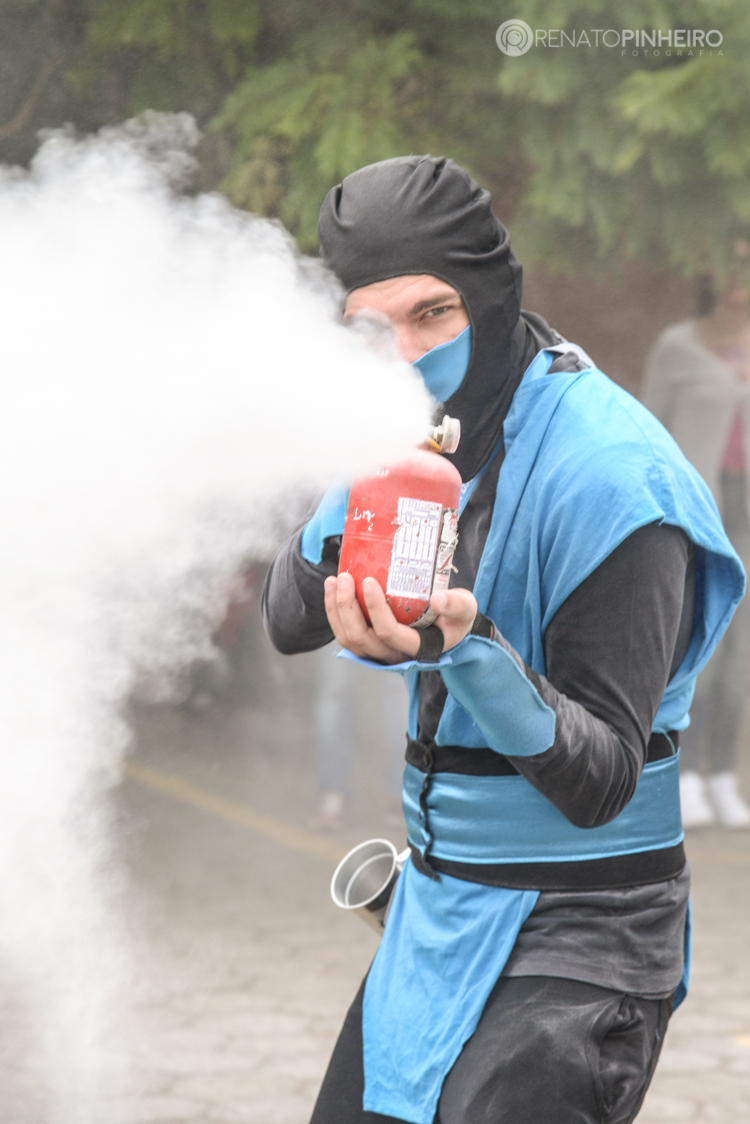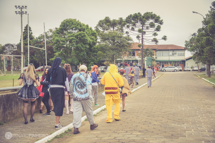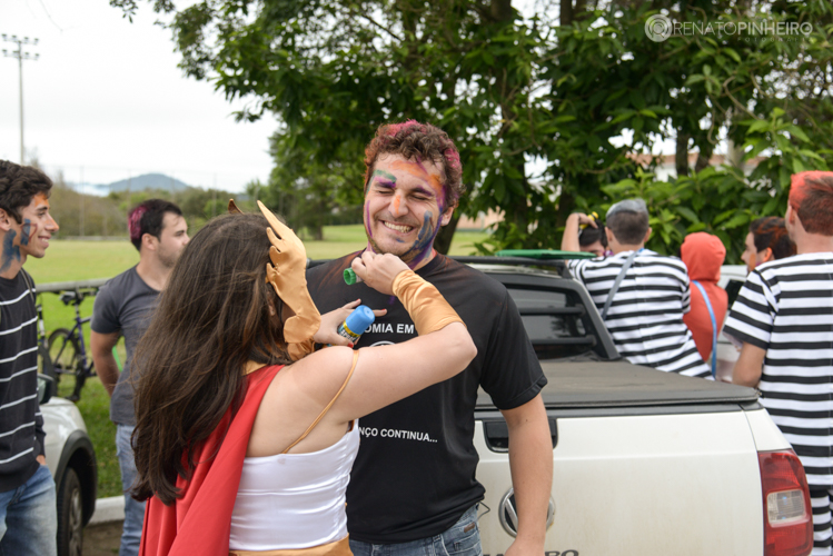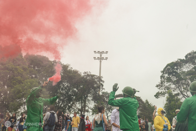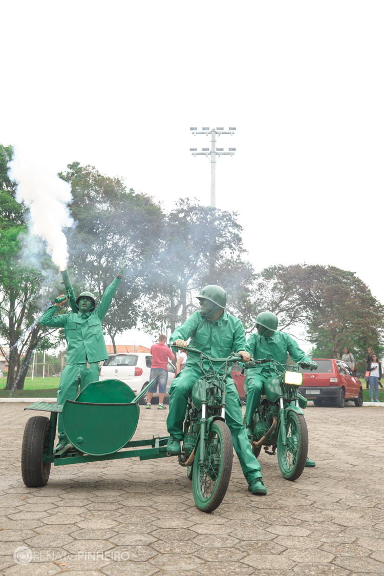 A festa começou como sempre com o café da manhã só para o pessoal da Nona, pessoal super animado (quanta fantasia engraçada) e afoito pra invadir o CAV. E que invasão, hein? Tinha bomba pra todo lado, sinalizadores de todas as cores e motos parecidas com as de desenho animado.