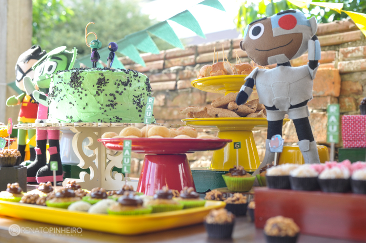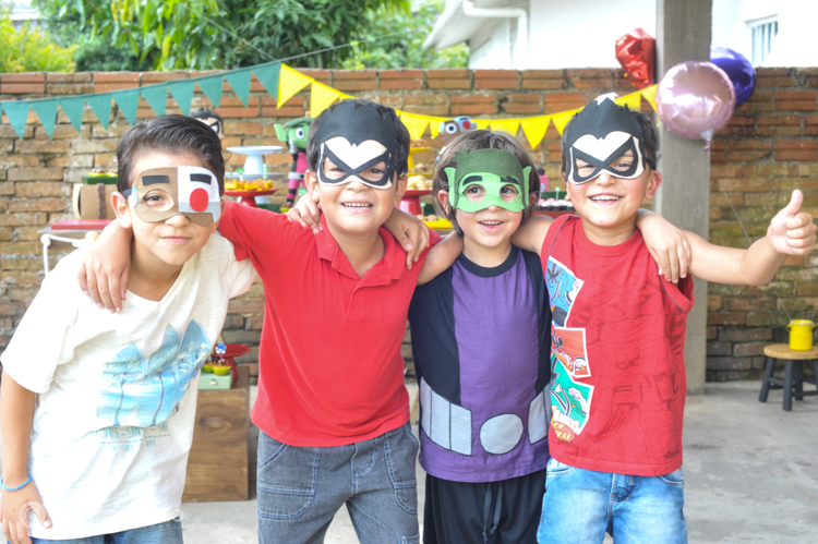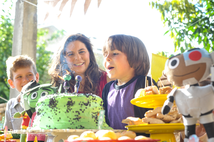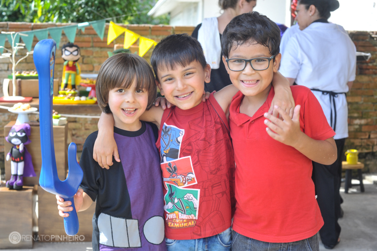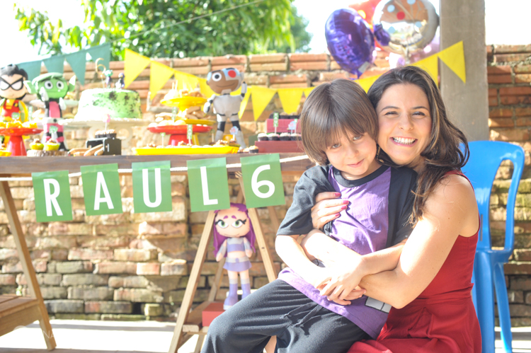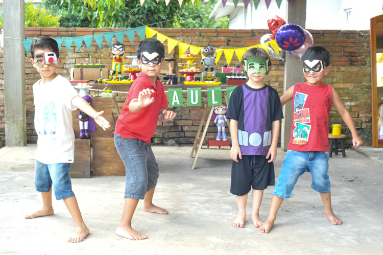 O Raul não parou um minuto durante a festa, brincou muito com seus amigos, e se divertiu com seus personagens favoritos do Tenn Titans.