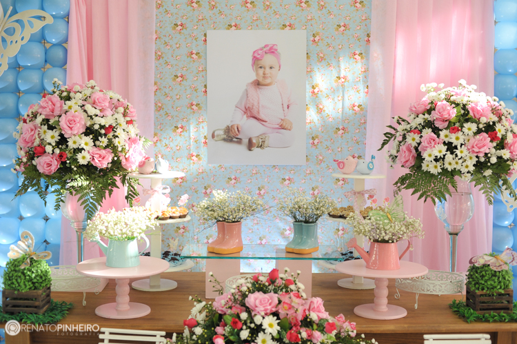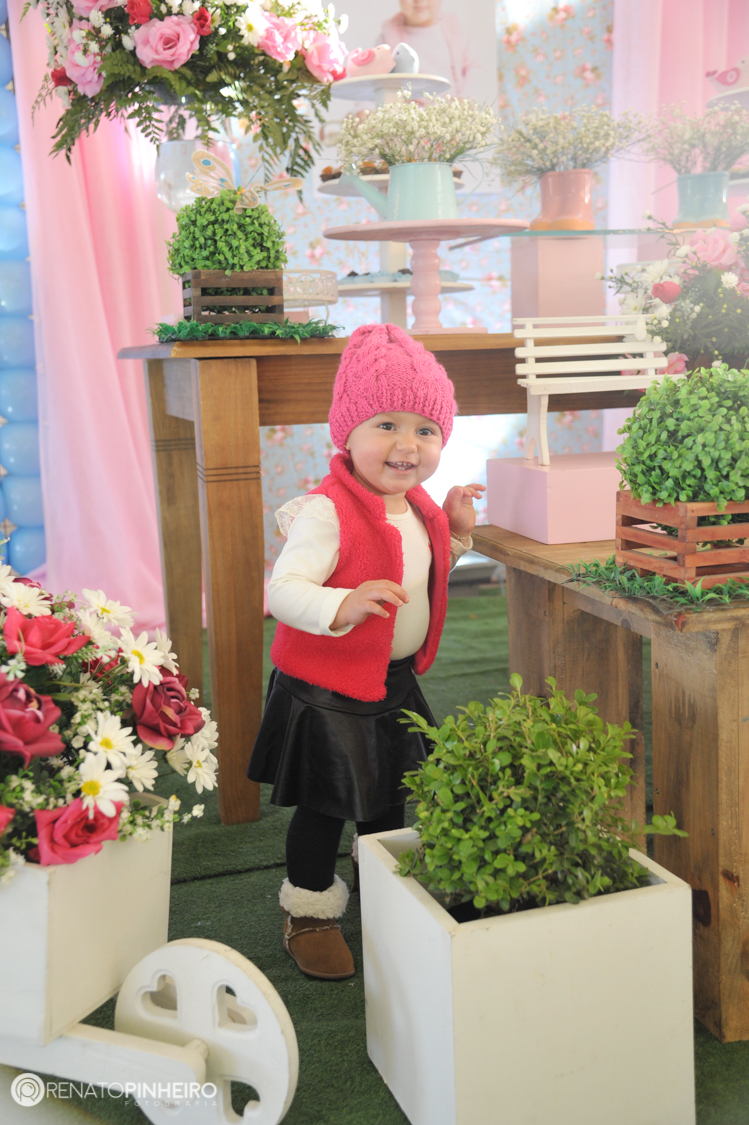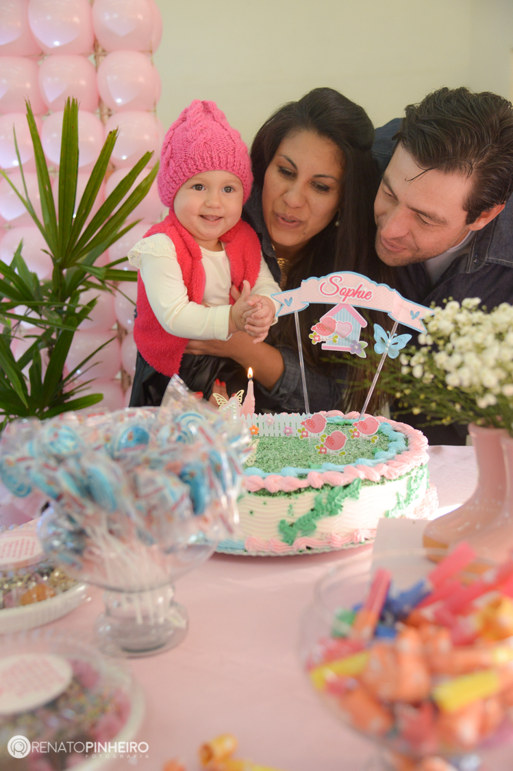 O Jardim da Sophie estava lindo, todo azul e rosa bebê, rodeado de lindas flores e verdes. A decoração estava perfeita linda demais. A Sophie aproveitou e brincou bastante com as dindas e os amiguinhos.