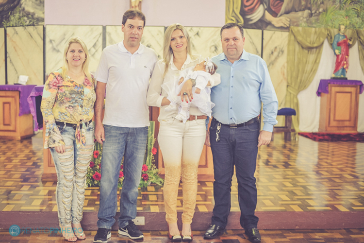 Os pais, padrinhos, avós e o maninho estavam radiantes com a pequena.