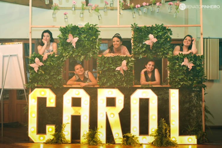 Vou usar um trecho da homenagem que suas amigas fizeram: "com seu jeito radiante e que contagia a todos, uma fábrica de abraços e distribuidora de carinho, por onde passa faz florescer a alegria." E é assim que a Carol é: uma menina que não nega sorrisos. Era lindo de ver a emoção e a alegria que recebia todos que chegavam na festa.