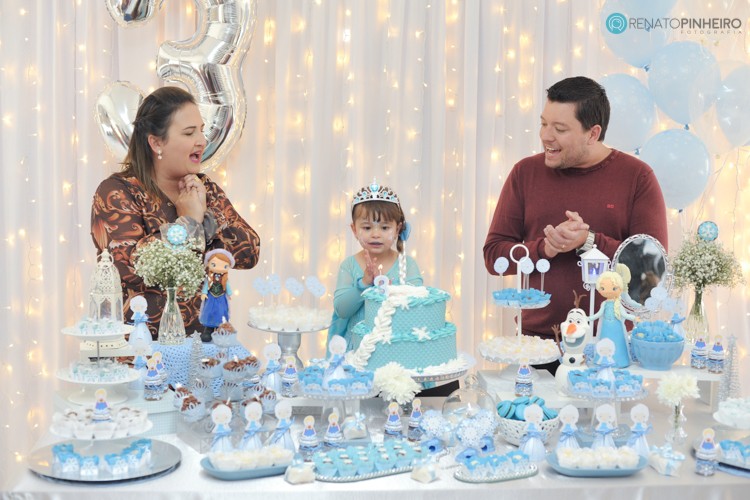 Mais um festa linda da Duda que temos o prazer e a honra de fotografar. Foi demais fotografar a Duda nessa festa, ela estava muito feliz com a festa e recepcionava a todos como gente grande. O tema desse ano Frozen fez jus ao frio que vem fazendo aqui na Serra Catarinense. Estava tudo nos conformes look de Elza e uma mesa linda colorida de azul e branco.