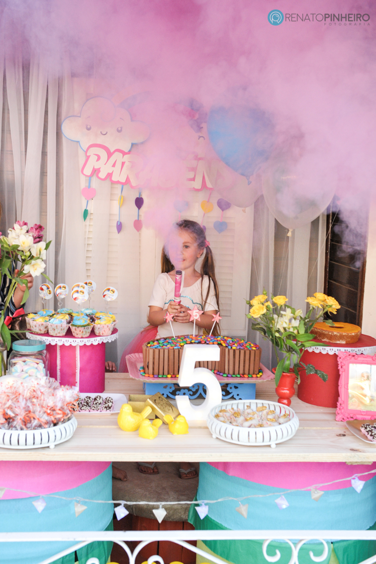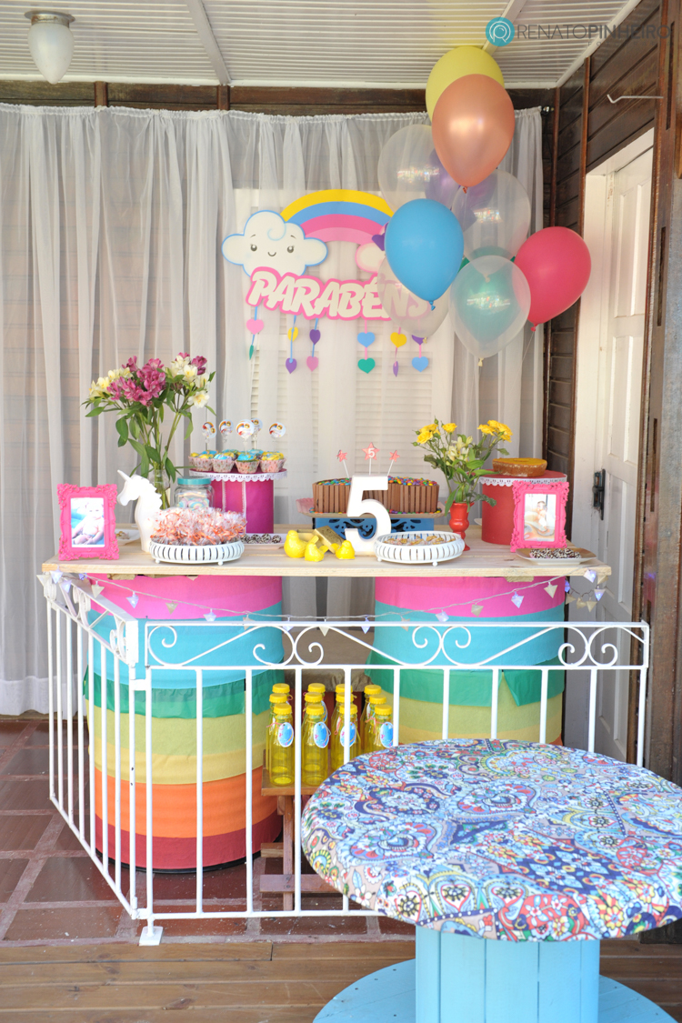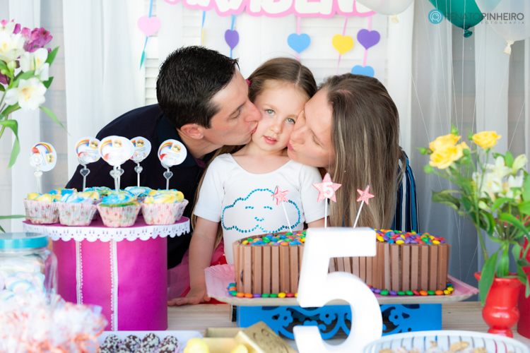 Uma festa divertida, linda e colorida como o arco-íris. Uma tarde de sábado super agradável, onde a família e os amiguinhos da Luiza se reuniram pra comemorar seus 5 anos.