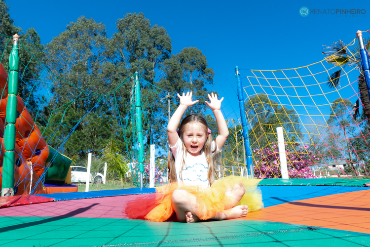 Teve muita diversão com todos os brinquedos. A Luiza aproveitou todos, e aproveitou também todas as atividades. É assim que tem que ser o aniversariante aproveitar do começo ao fim.