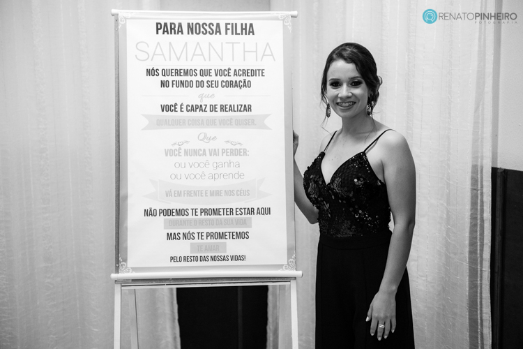 Teve discurso sim, e teve uma surpresa linda dos pais pra Samantha, um quadro com palavras vinda direto do coração.
