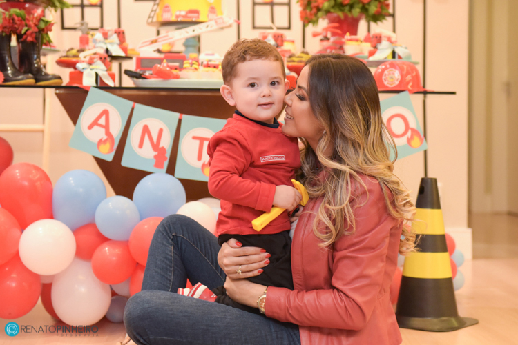 O Antônio escolheu o tema Bombeiros, estava de uniforme timbrado e tudo. Uma decoração impecável, muito bom gosto Juliana.