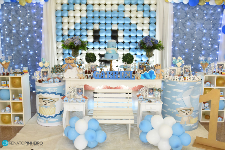 Uma festa linda pra comemorar o 1º Aninho do Gabriel. E bota festa linda nisso. O tema escolhido foi Urso Baloeiro, muito bom gosto dos pais Fran e Josias. Tudo feito com muito carinho, beleza e amor. Ficou impecável a decoração. Estava tudo perfeito comida, bebidas e claro a energia de todas as pessoas presentes.
